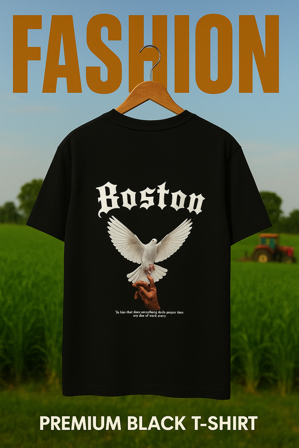 BOSTON PREMIUM BLACK GRAPHIC T-SHIRT-DOVE PRINT